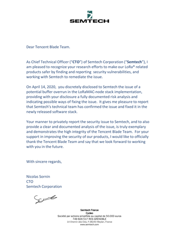 近期,腾讯安全平台团队Tencent Blade Team 发现了一个LoRaWAN协议栈漏洞,此漏洞基于Semtech 开发及维护的LoRaMac-Node(github上开源)。国内LPWAN业界基本都使用这个协议栈来快速开发基于LoRaWAN协议的终端产品,此漏洞影响的版本是V4.4.2-rc1到V4.4.4。此后,Semtech公司回复并承认此漏洞。
